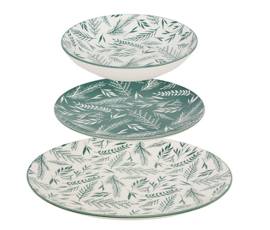 Subtili žalia spalva ir gėlių lapelių motyvai suteikia servizui natūralumo, gaivos ir išskirtinio žavesio.