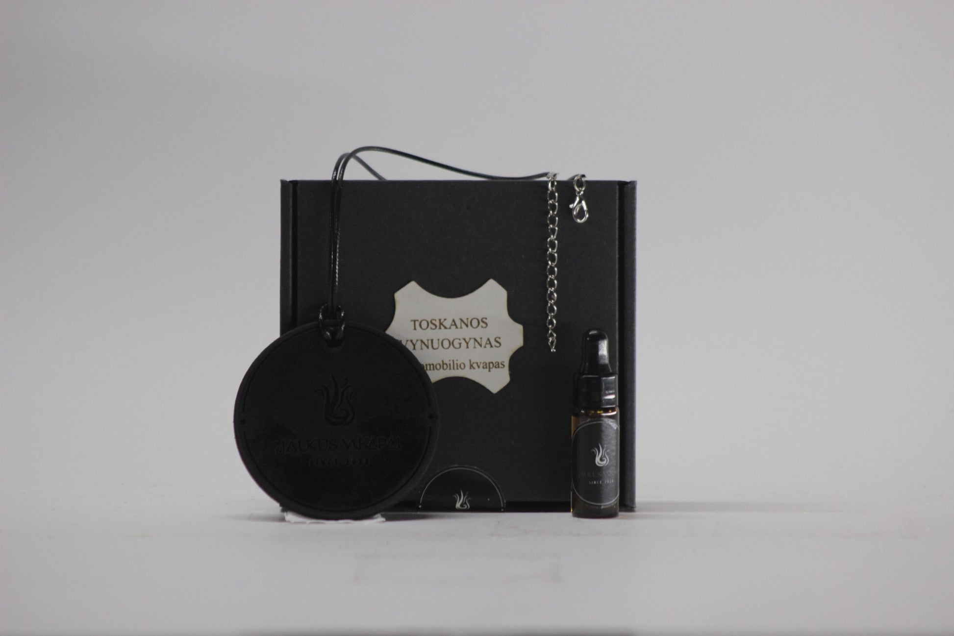 Automobilio kvapo rinkinys – natūralios odos kortelė ir aromatinis aliejus