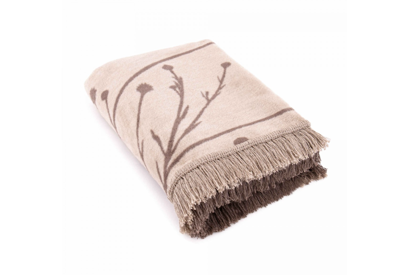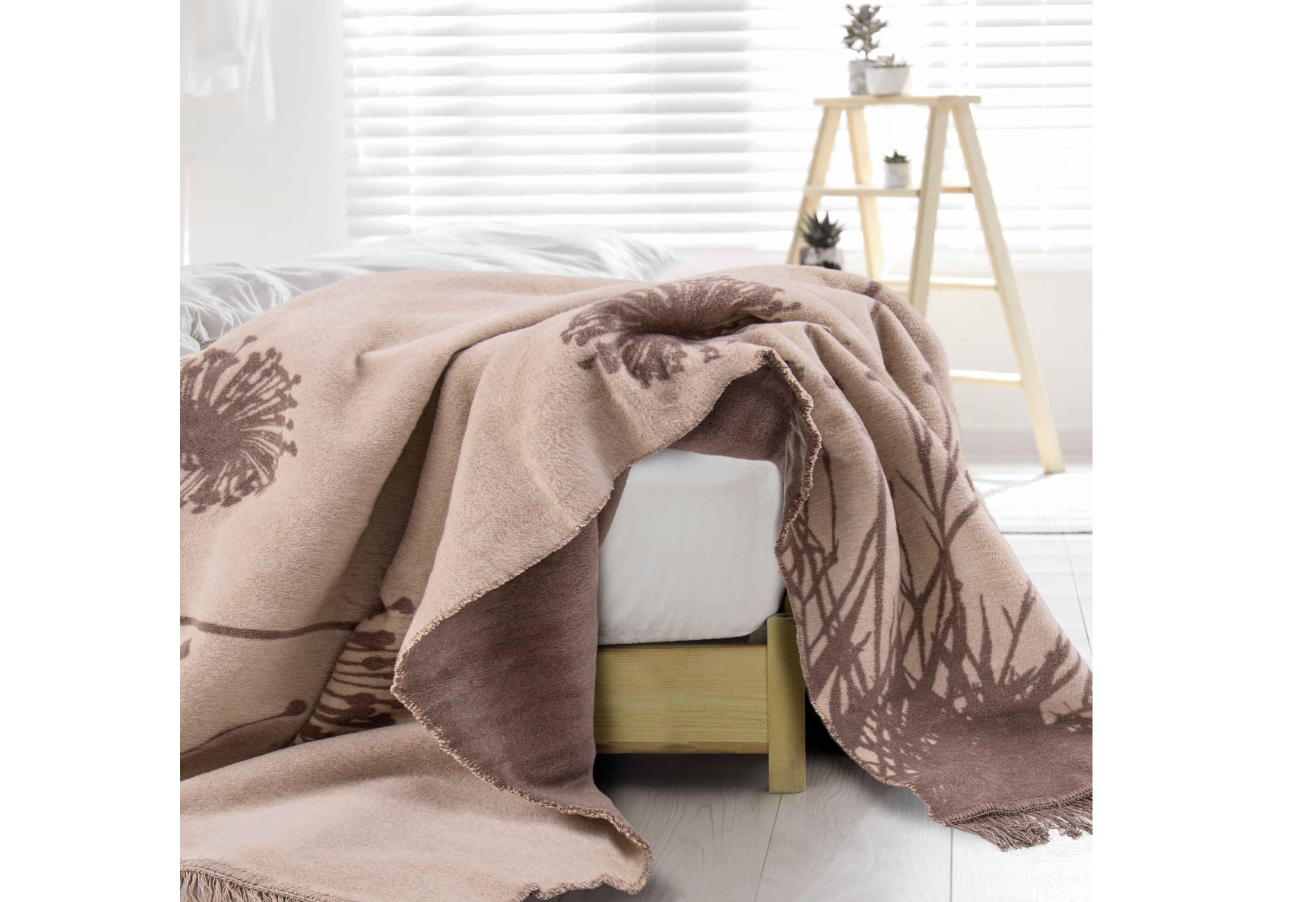 Gamtos raštais puošta antklodė. Dydis 150x200. Šviesiai rudos spalvos.
