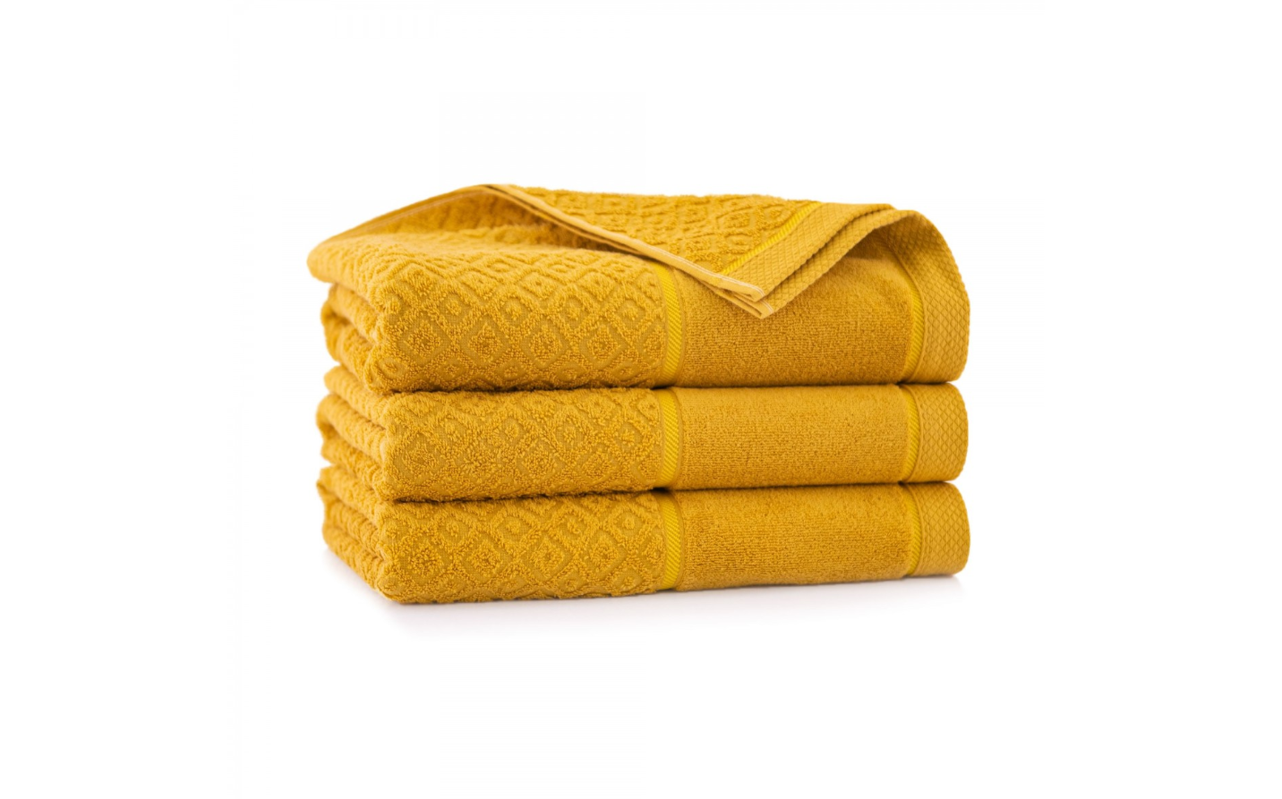 Išskirtinio grožio, vonios rankšluostis "MAKAO". Ciberžolės geltonumo spalvos. Dydis 70x140