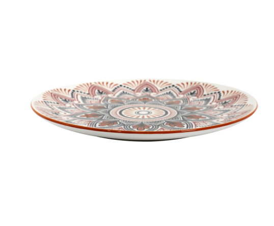 Mandalos lėkštė 26cm su oranžinės-raudonos spalvos raštais