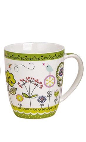 Porcelianinis puodelis su gėlių dekoru