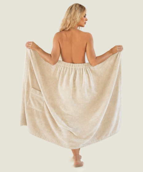 Smėlio spalvos saunos rankšluostis "Pareo" dydis 90*140.