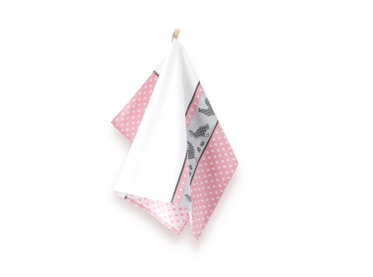 Virtuvinis rakšluostis "FOLK" rožinės spalvos. Dydis 50X70.