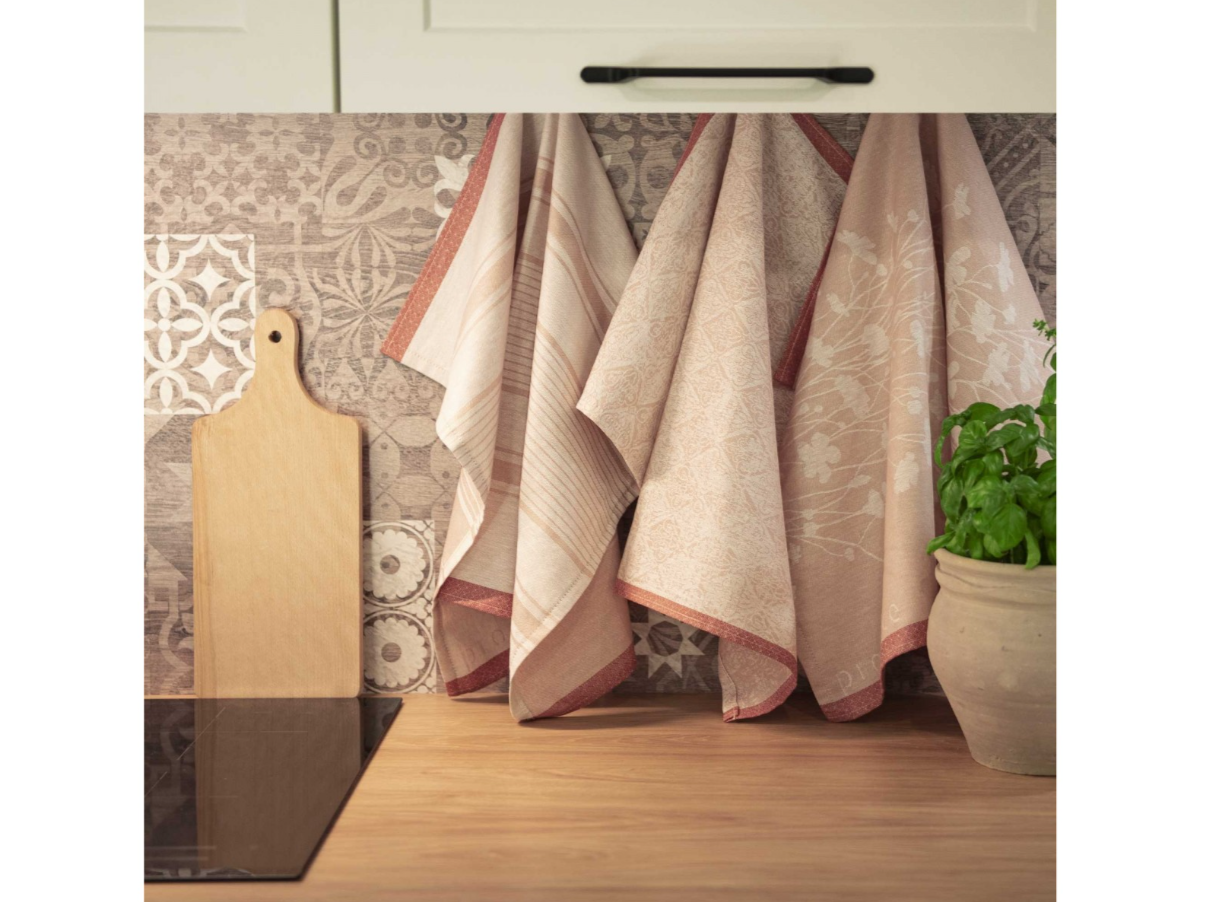 „Provence Clasique“ – tai žakardo austi, greitai džiūstantys audiniai su minimalistiniu dizainu. Rožinė spalva suteikia jiems ryškų akcentą bet kokiam interjerui. Dėl itin minkštos technologijos jie minkšti, malonūs liesti ir puikiai sugeria vandenį. Ši moderni šluostė leis valyti virtuvę daug patogiau.