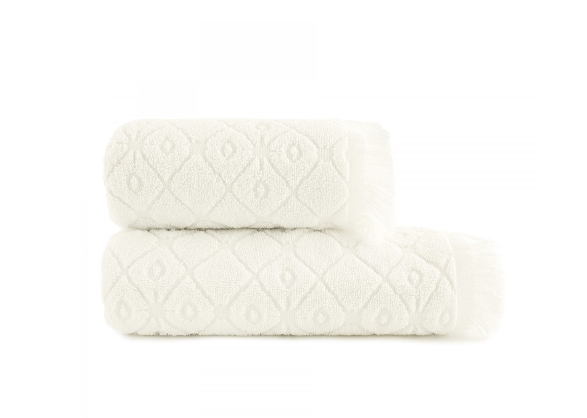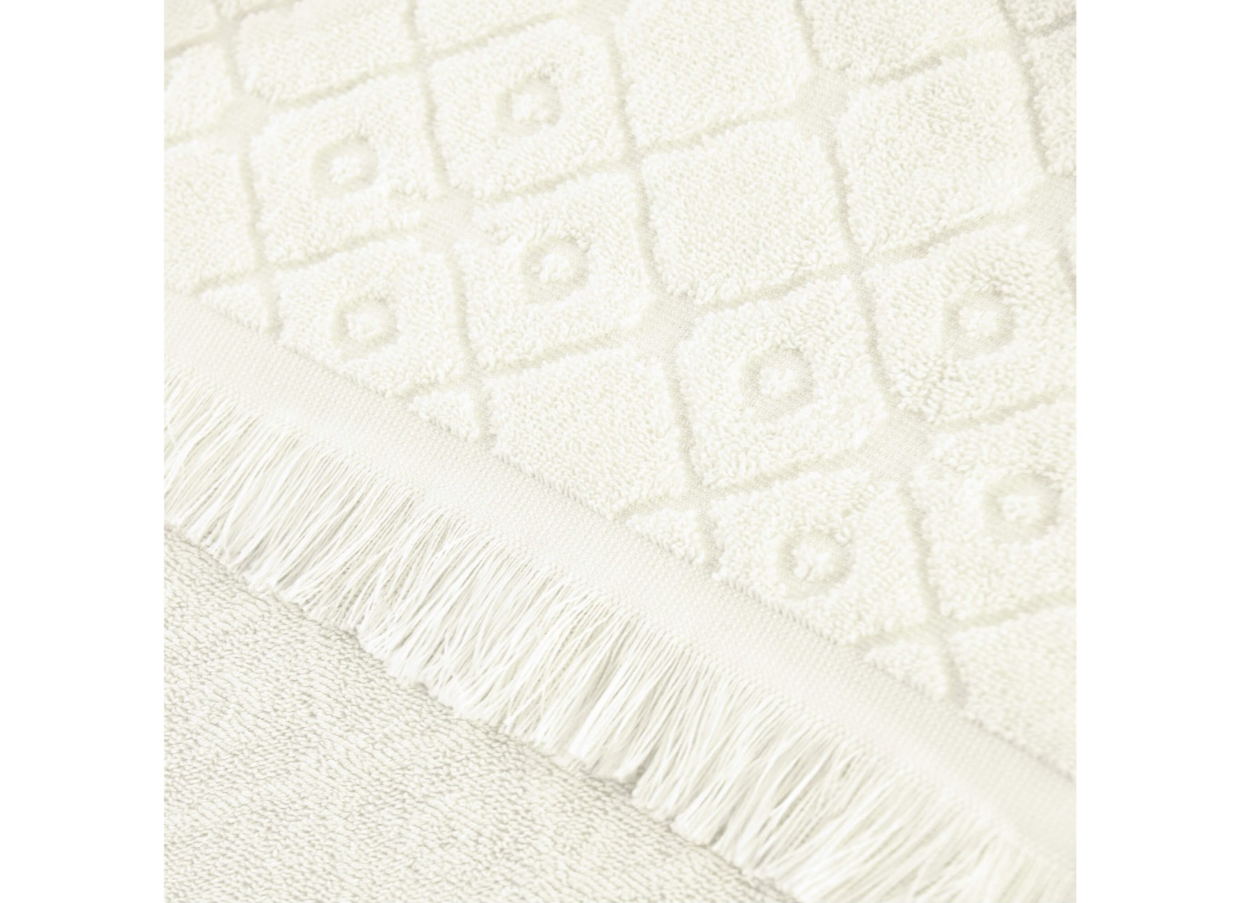 Praturtintas subtiliu reljefiniu raštu ir dekoratyviniais kutais, jis suteikia vonios kambariui elegancijos ir šiek tiek rytietiško pojūčio. Kruopščiai išausta tekstūra suteikia rankšluosčiui prabangią išvaizdą net ir po daugelio skalbimų.