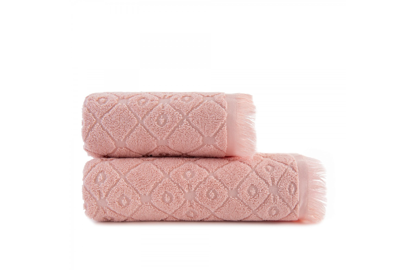 Praturtintas subtiliu reljefiniu raštu ir dekoratyviniais kutais, jis suteikia vonios kambariui elegancijos ir šiek tiek rytietiško pojūčio. Kruopščiai išausta tekstūra suteikia rankšluosčiui prabangią išvaizdą net ir po daugelio skalbimų.