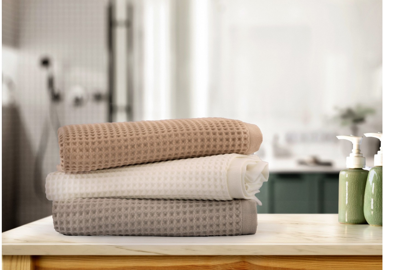 „Natural“ serija puikiai tinka tiems, kurie vertina subtilų eleganciją ir natūralias medžiagas. Pagaminta iš 315 g/m² Egipto medvilnės, vaflinė struktūra suteikia jai ne tik elegancijos, bet ir, svarbiausia, puikų naudojimo patogumą. Unikalus pynimas padidina medžiagos sugeriamąjį paviršių, todėl rankšluostis greičiau ir efektyviau sugeria drėgmę.