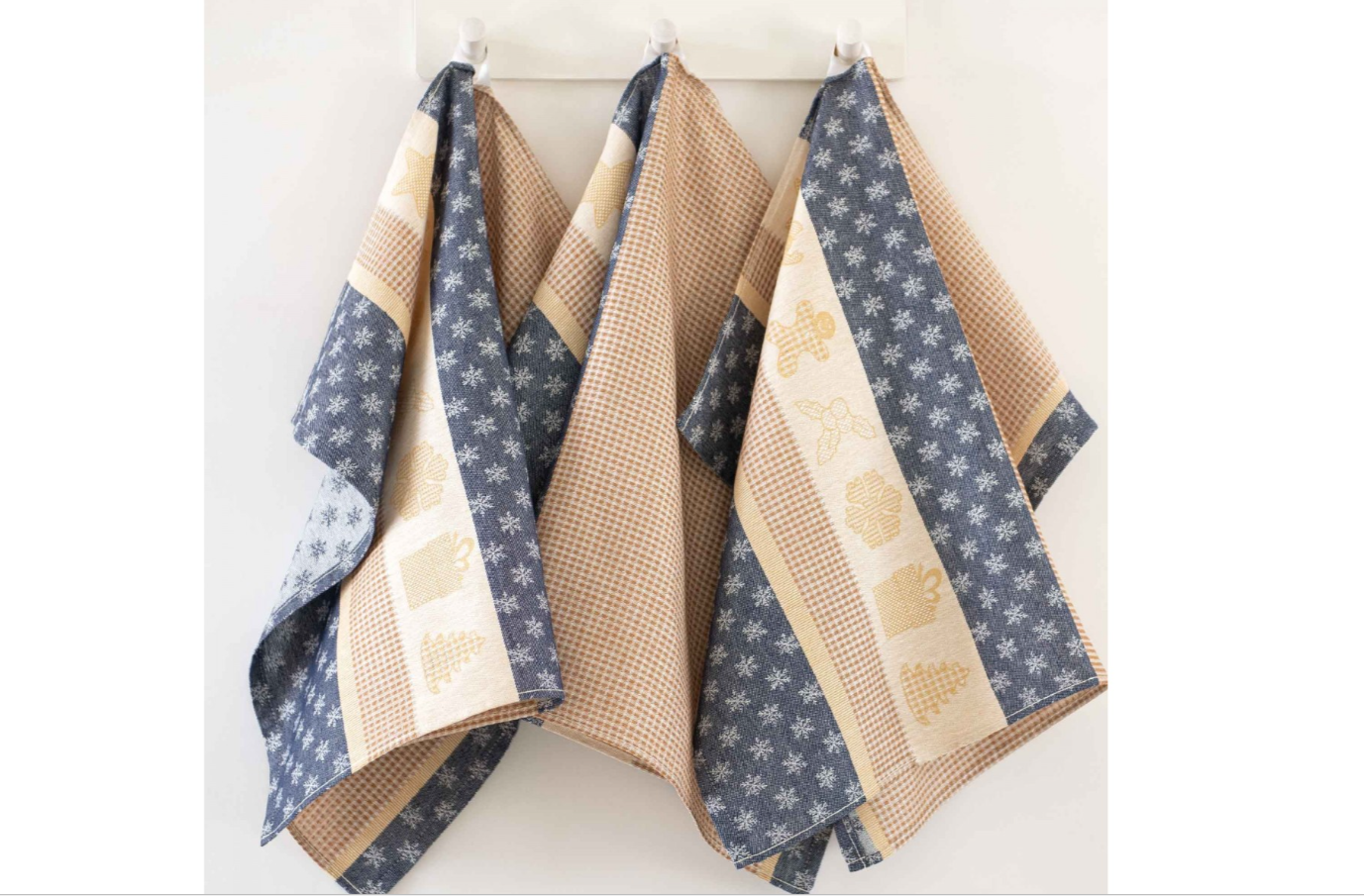 Žavus virtuvinių rankšluosčių rinkinys "Ciastek". Melsvai pilkos spalvos. 3vnt, dydis 50x70.