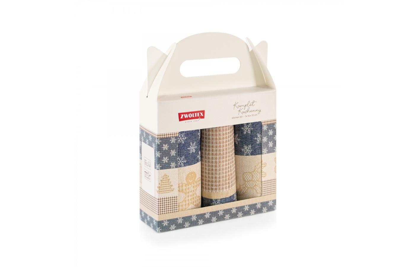 „Ciastek“ – tai žavus virtuvinių rankšluosčių rinkinys su unikaliu atmosferiniu šventinį motyvu. Kruopščiai pagaminti iš natūralios medvilnės, jie garantuoja aukštą kokybę ir ilgaamžiškumą. Rinkinį sudaro trys labai gerai sugeriantys 50x70 cm dydžio virtuviniai rankšluosčiai. Šis būtinas virtuvės aksesuaras ne tik pravers atliekant namų ruošos darbus, bet ir padarys juos daug malonesnius. Smėlio spalva puikiai papildys žiemos švenčių dvasią ir bus gražus jūsų virtuvės papildymas. Produktas supakuotas gražioje dėžutėje, todėl tai puiki dovana.
